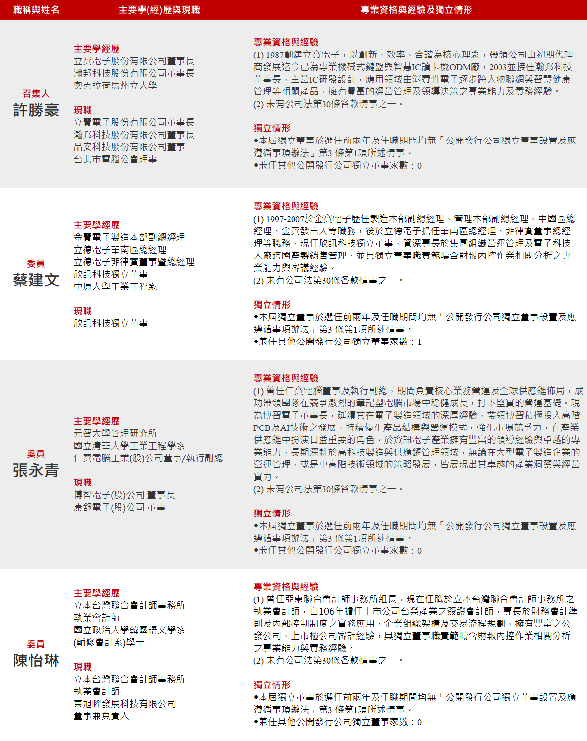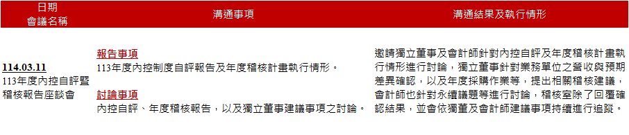 審計委員會旨在協助董事會於公司執行有關稽核、財務控制、會計與財務報導等之時,作為重要的監督角色。